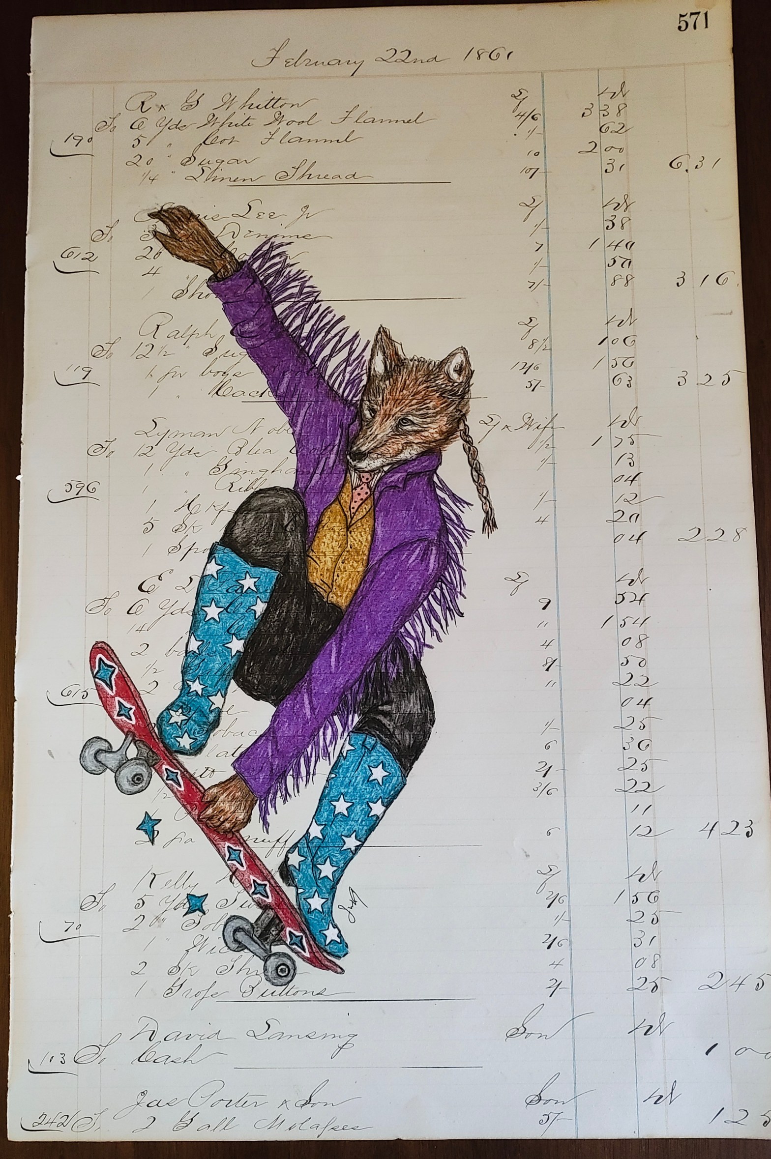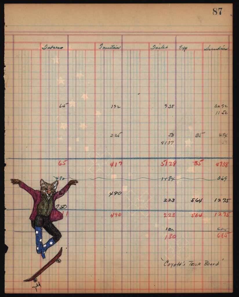 ‘Coyote Trick Board’ Double-sided ledger drawing SOLD
