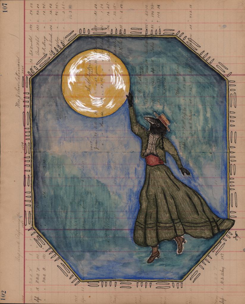 Crow Steals the Moon while standing on a Mechanical Beanstalk