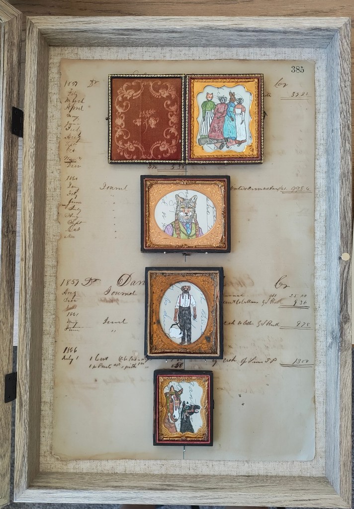 Menagerie – Daguerreotype Frames in shadow box with original drawings