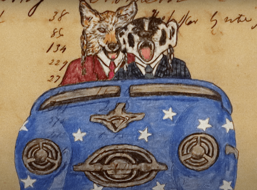 The pow wows and fairs I illustrate are populated by creatures and figures from Native American myths and stories: coyote, badger, bear, crow, mudhead, Koshari. All are outfitted with Steampunk-era accoutrements like machinery, gears and goggles to accent their natty period dress.